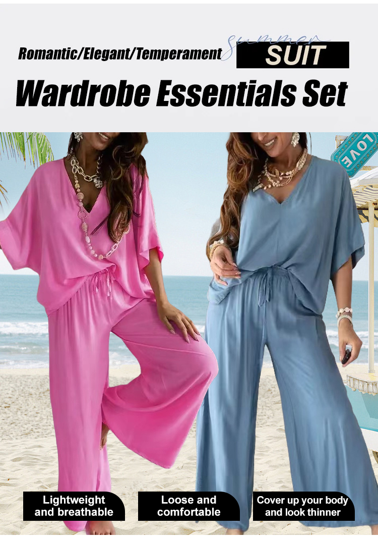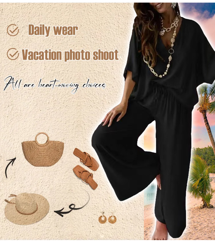 V-neck bat sleeve loose wide-leg pants suit