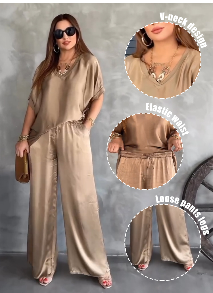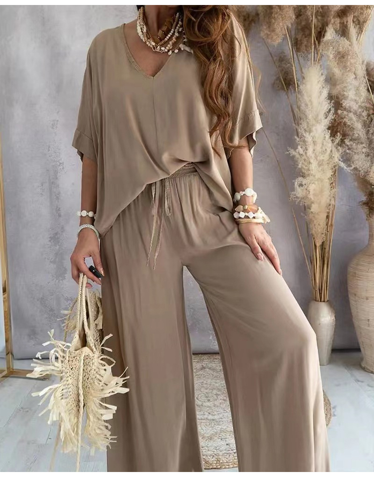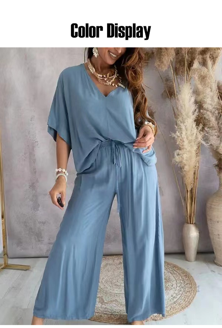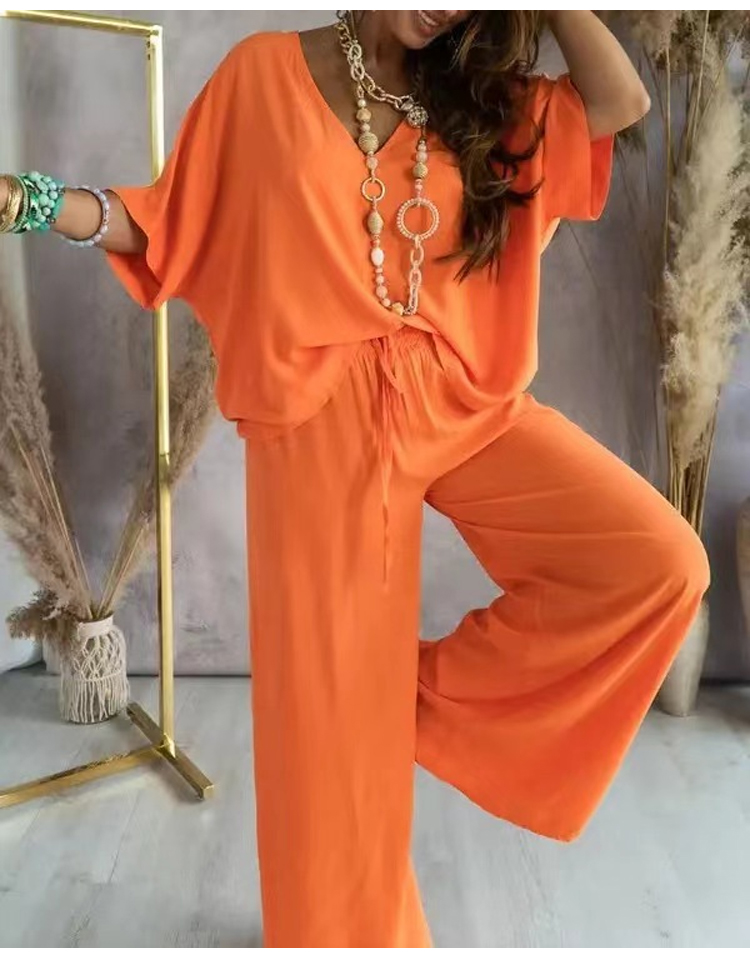 V-neck bat sleeve loose wide-leg pants suit
